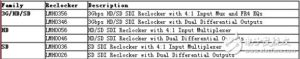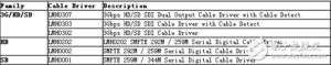 SDI 線纜驅(qū)動器用來加強對線纜的驅(qū)動能力,提供標(biāo)準(zhǔn)的800mV 峰峰值輸出電壓擺幅,沒有預(yù)加重和去加重功能。TI 的線纜驅(qū)動器系列如表4 所示。