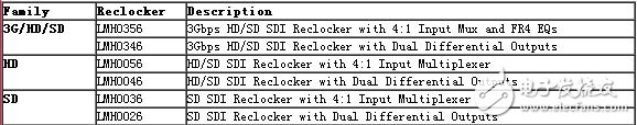 TI 提供支持SD、HD、3G SDI 全系列的均衡器,如表2 所示。