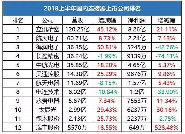 2018年國內(nèi)連接器廠商上市公司排名情況