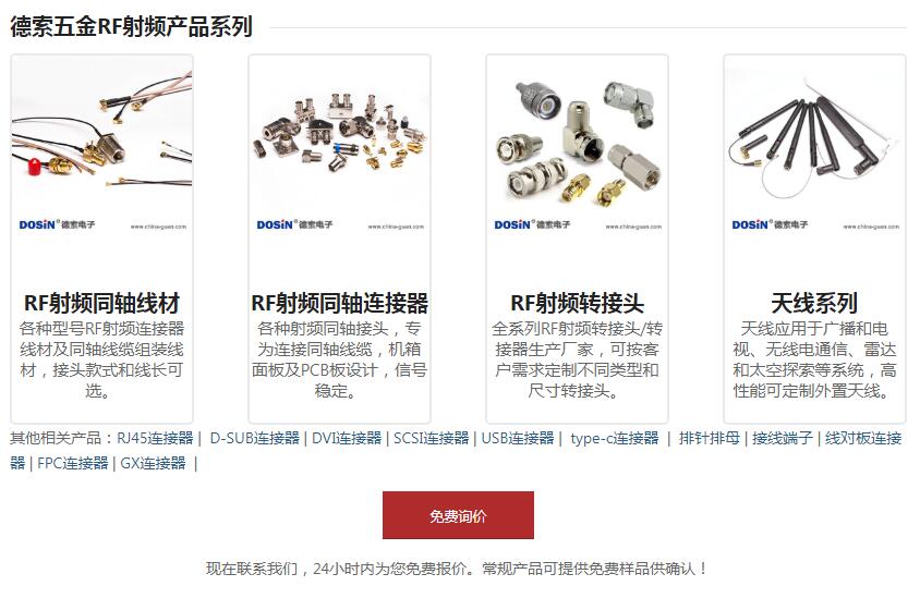 文中的國內(nèi)連接器廠商排名數(shù)據(jù)來自網(wǎng)絡,若有不嚴謹?shù)牡胤竭€請諒解。了解更多與連接器廠家排名相關(guān)的文章,請關(guān)注我們的網(wǎng)站最新動態(tài)。德索五金電子,成立已有十四年,所生產(chǎn)的連接器產(chǎn)品均通過ISO認證,符合國際環(huán)保要求,承諾所有用戶一年內(nèi)免費質(zhì)保,售后體系完善,值得您的信賴。只要您下單,我們即可快速投入生產(chǎn),讓你快速拿貨,還在猶豫什么,快來與我們合作吧。
