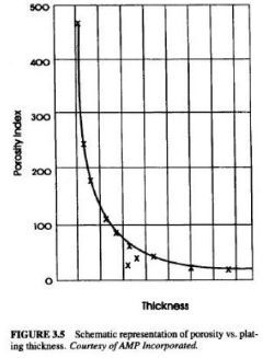 在電鍍工藝中,金在眾多暴露在表面的污點上成核,形成多孔性的電鍍表面。金鍍層的多孔性與鍍層厚度有一定的關(guān)系。在0.38μm以下,多孔性迅速增加。0.76μm以上,多孔性很低。多孔性和基材的缺陷,如包含物,疊層,沖壓痕跡,沖壓不正確的清洗等也有一定關(guān)系。