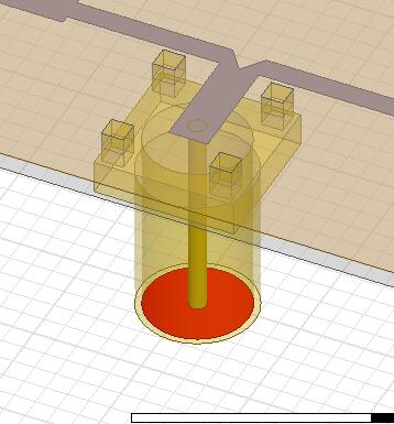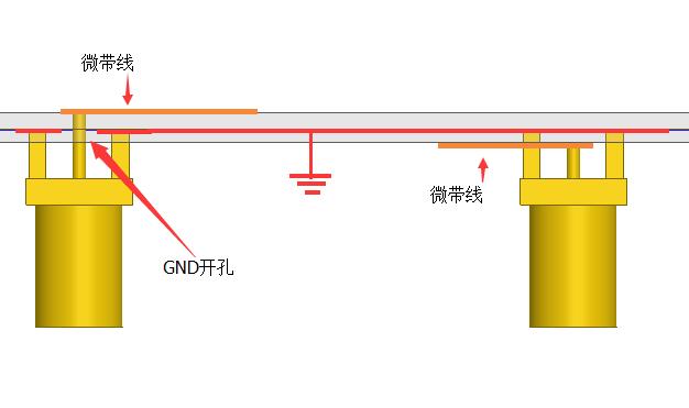 微帶線在地板上方時,將SMA四個腿剪短焊接到GND上,內(nèi)芯穿過GND上開的洞與微帶線連接,在此有個小問題,GND上開的洞半徑多少合適?