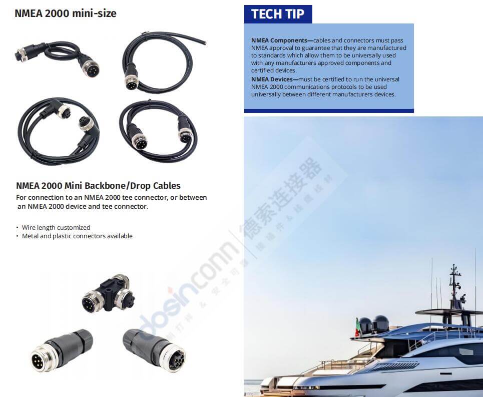 德索精密工業(yè)NMEA 2000電纜專題頁面地址:http://www.ads0517.com/nmea-2000/,上千款NMEA 2000電纜優(yōu)質(zhì)新品待您挑選,采購熱線電話:400-6263-698.下單后即可排單,交期及時,一年質(zhì)保,售后無憂。
