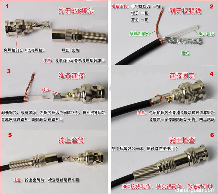 視頻監(jiān)控中BNC連接器怎么接?bnc連接器,也叫做bnc接頭,常用語(yǔ)視頻監(jiān)控設(shè)備中,但在視頻監(jiān)控安裝的環(huán)節(jié)里,很多客戶不知道這個(gè)小小的bnc連接器要怎么去接。bnc連接器要是沒接好的話,可能會(huì)出現(xiàn)視頻圖像、圖像不清晰、受干擾、雪花點(diǎn)等問題,因此弄懂BNC連接器怎么接十分重要。