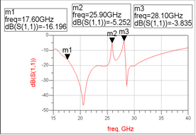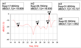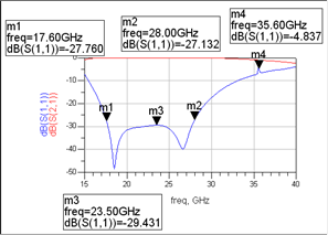 由圖4的仿真曲線可以看出,在標(biāo)準(zhǔn)矩形波導(dǎo)BJ220工作的頻帶范圍17.6—26.7GHz內(nèi),轉(zhuǎn)接器的反射系數(shù)在-27dB以下,即駐波系數(shù)小于1.05。并且由于過渡圓孔的抑制作用,由高次模產(chǎn)生的諧振尖峰也被提高到35.6GHz,移出了轉(zhuǎn)接器的工作頻帶。故通過這種改進(jìn),SMA接頭認(rèn)可運(yùn)用于高于18GHz的場合。