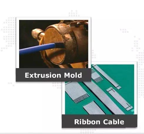 擠壓成型通過擠壓融化的塑料,使其穿過一個(gè)模具,最終包裹住電線上。擠壓成型一般用來生產(chǎn)像帶型電纜的產(chǎn)品