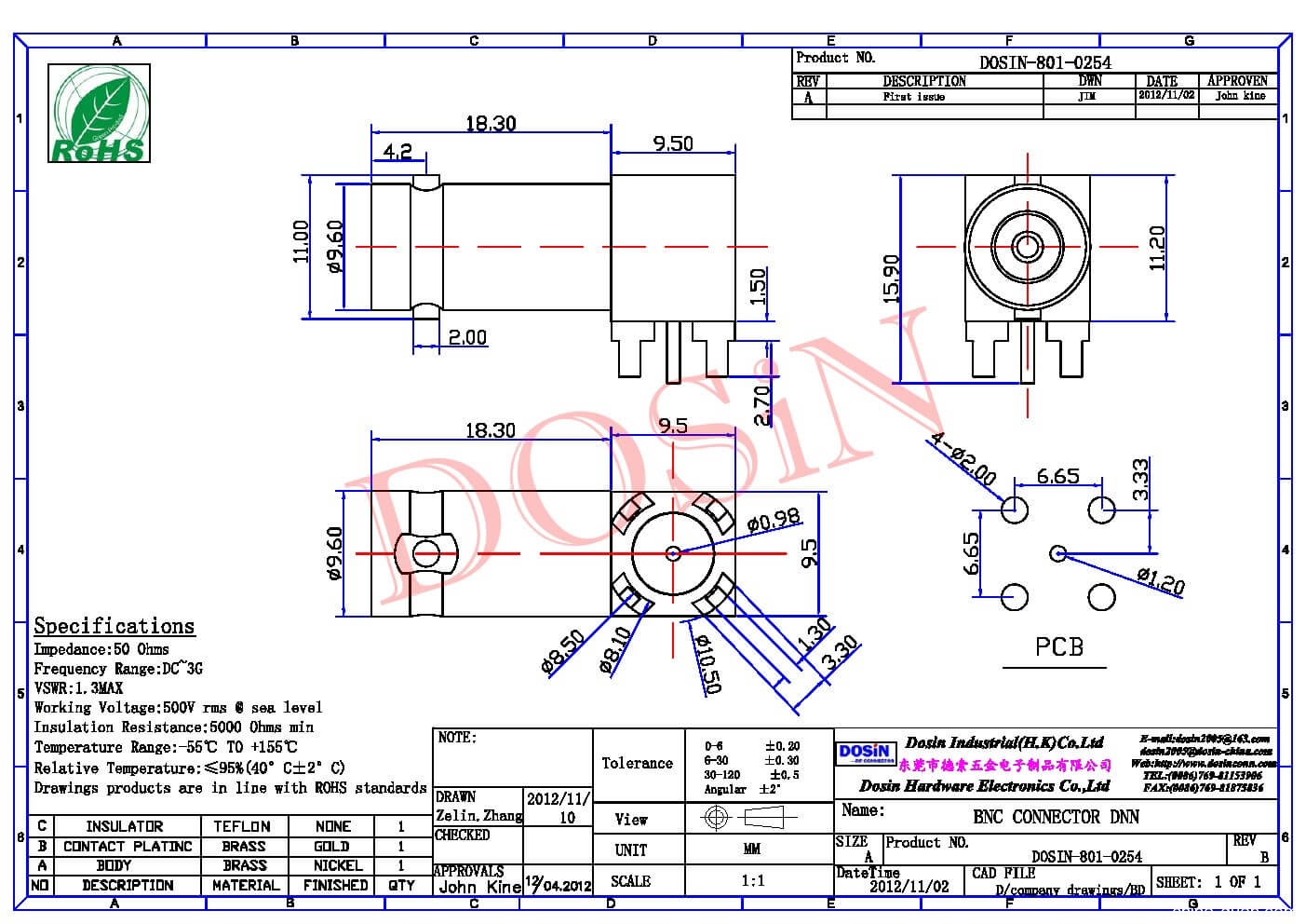標簽:?母頭, PCB板, 彎插, BNC, 射頻同軸連接器