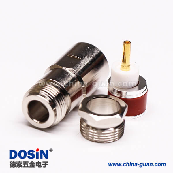 RF同軸N頭連接器直式母頭螺母鎖緊接線