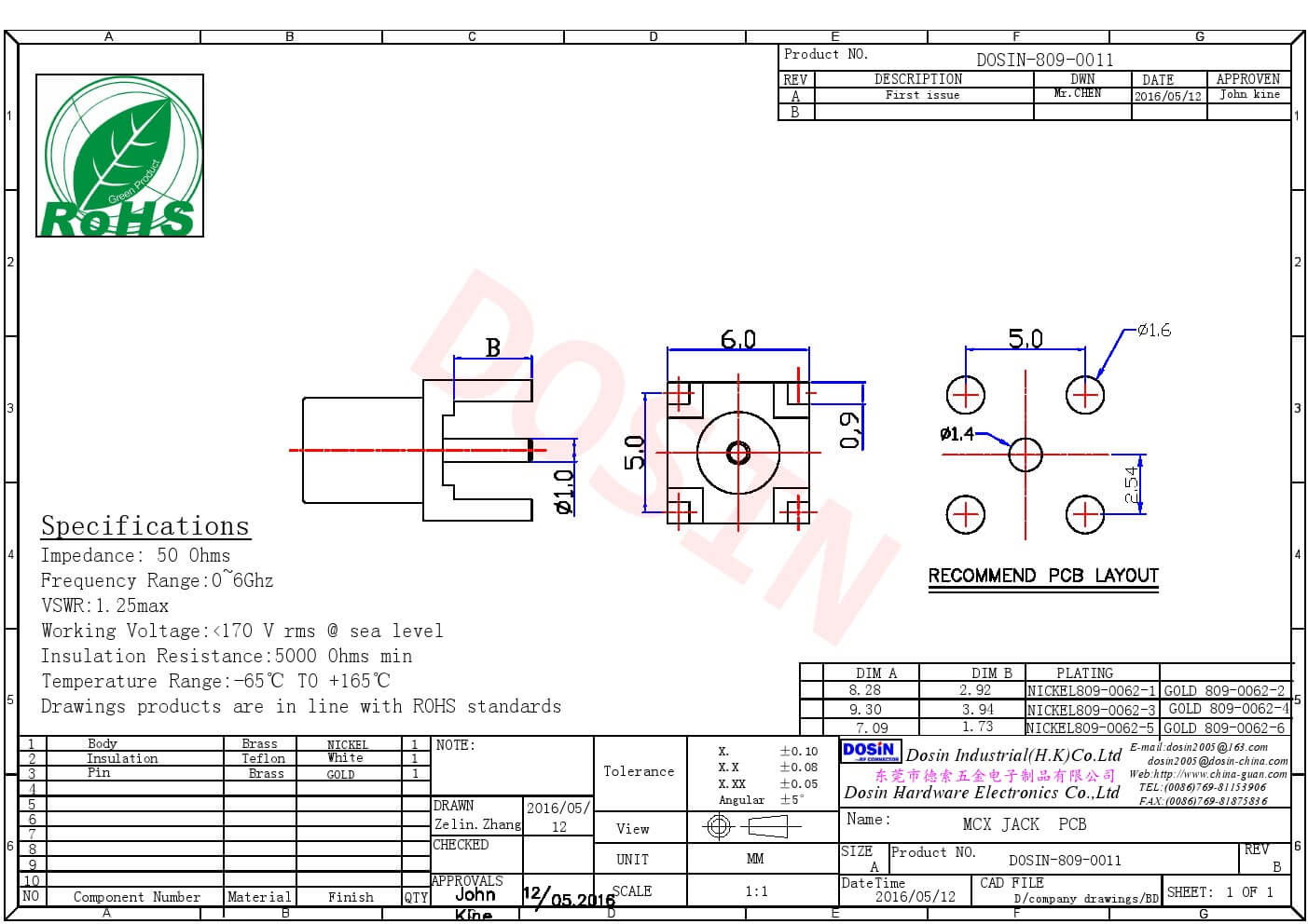 標(biāo)簽:?PCB板端,直式,mcx連接器,射頻同軸