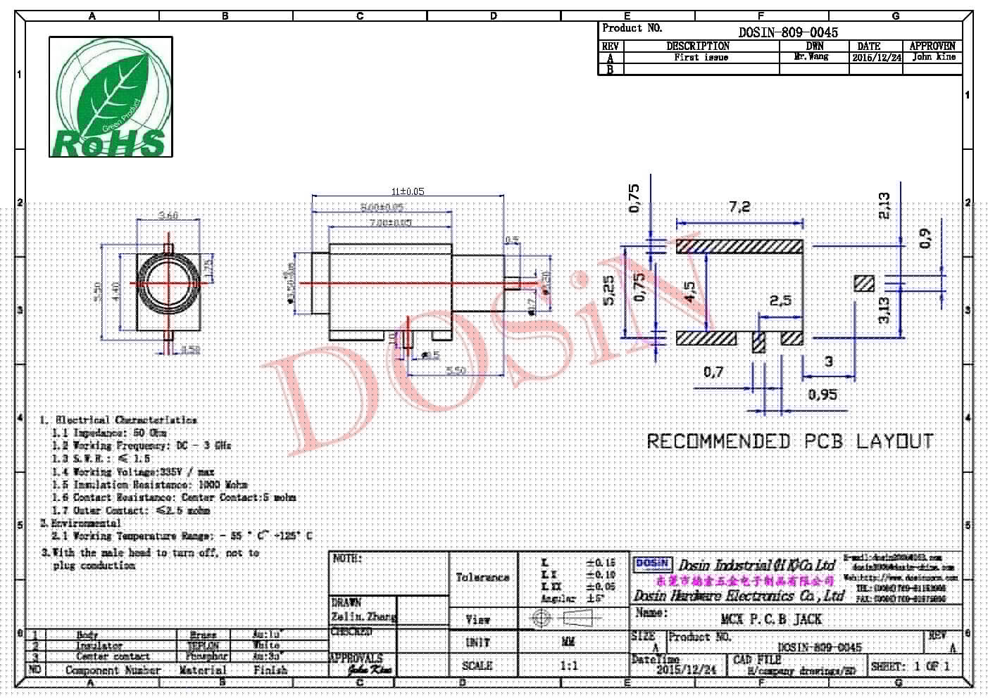 標簽:mcx連接器,pcb板,母頭,51歐,彎插