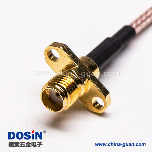 MMCX公轉(zhuǎn)SMA接頭母彎式90度2孔法蘭組裝線材壓接