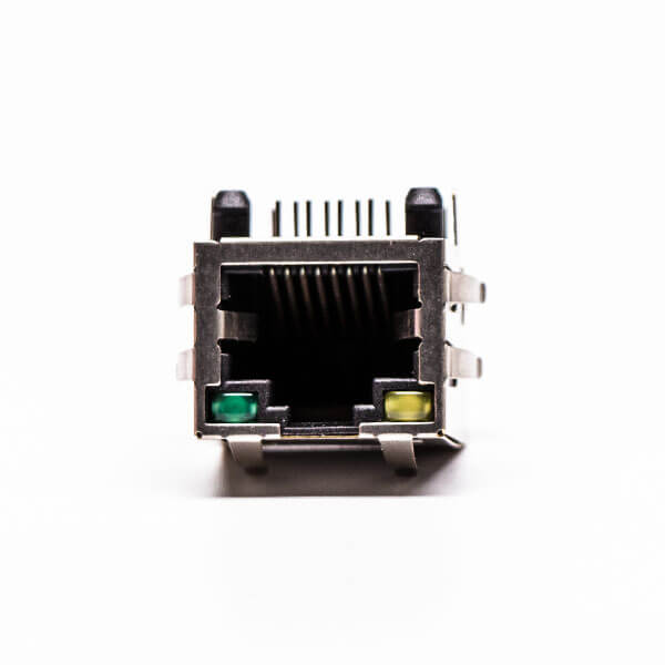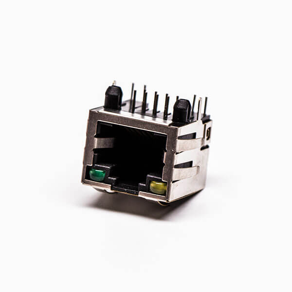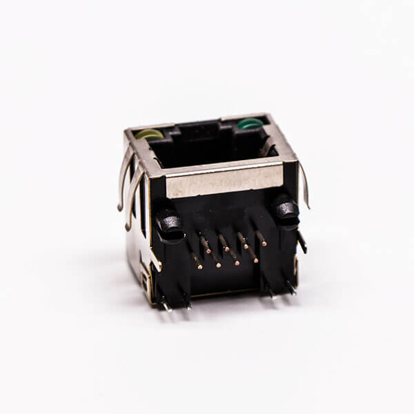 料號:DOSIN-819-0516 標簽:RJ45,母座,PCB板,單口,彎式,帶屏蔽,帶燈,銅殼