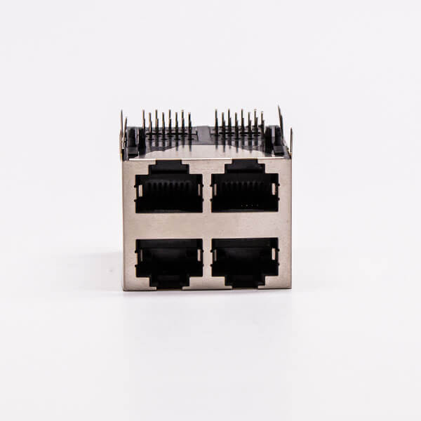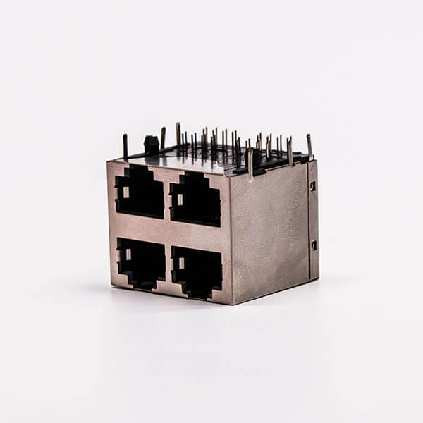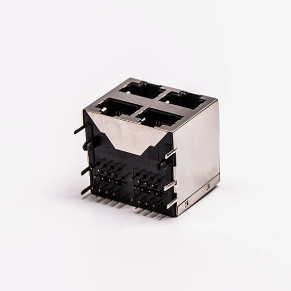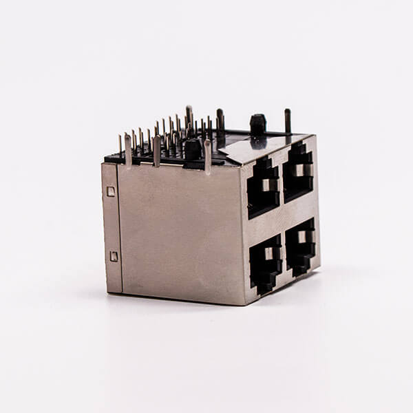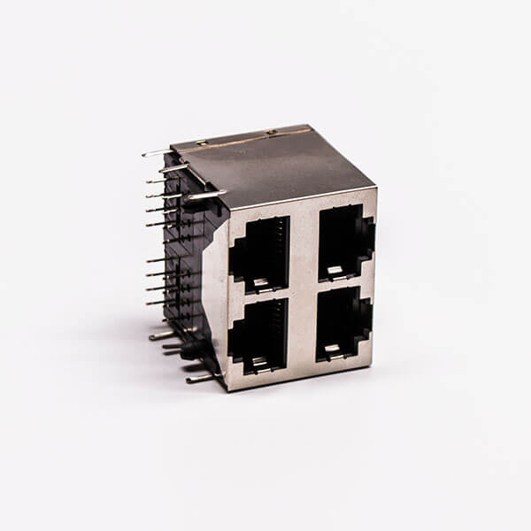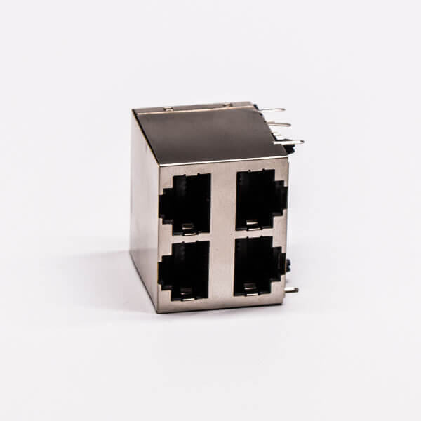 標(biāo)簽:RJ45,母座,PCB板,8P,2*2,四口,彎式,帶屏蔽,不帶燈,帶彈片,銅殼,不帶彈片