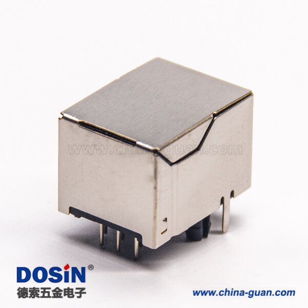 料號:DOSIN-819-0625 標簽:RJ45插座,8P8C,單端口,1*1,彎式90°,觸頭鍍金,插孔,PCB板安裝,帶屏蔽,不帶燈,不帶濾波