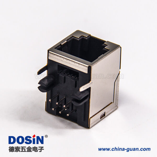rj12網(wǎng)絡(luò)接口彎式插座插PCB板金屬外殼帶屏蔽不帶燈