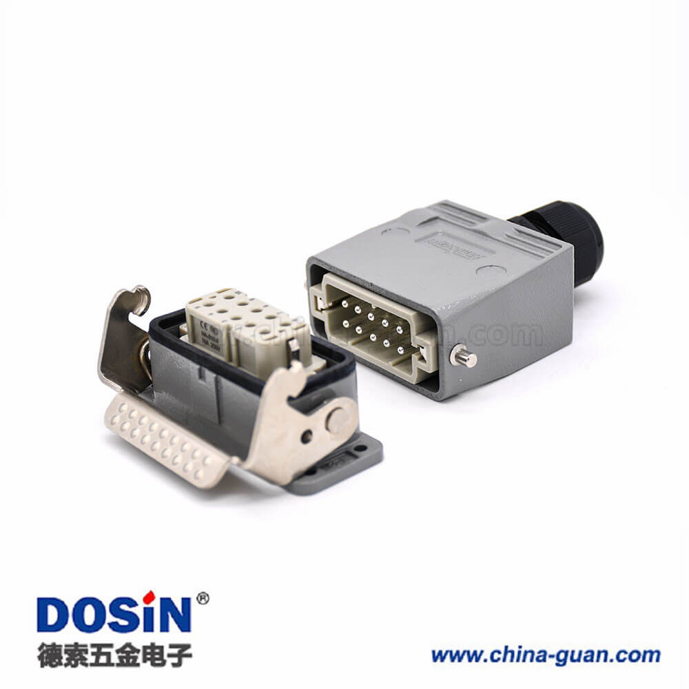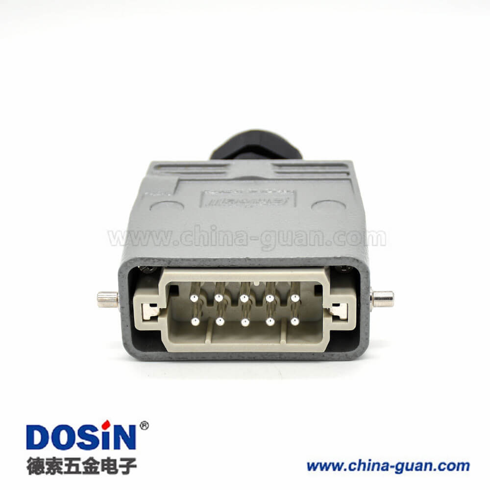 標(biāo)簽:H10A,重載連接器,開孔安裝,2耳,單扣,頂出口,鐵扣,10芯,鍍銀,公母對(duì)接,M25