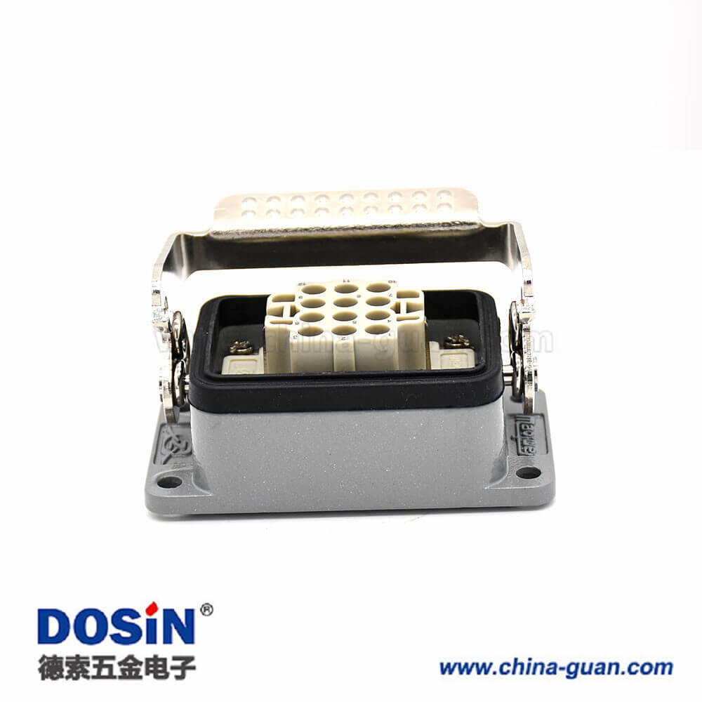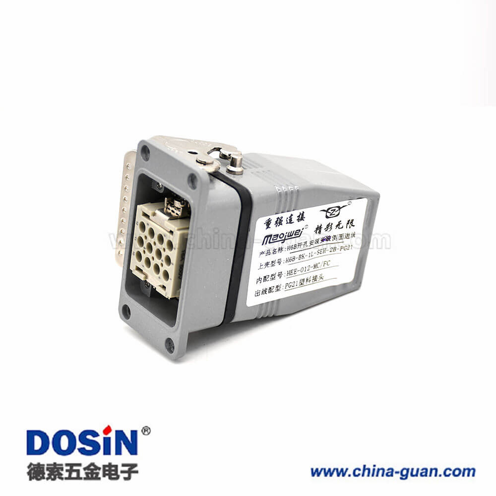 矩形重載連接器H6B不帶針公頭12芯螺紋PG21高結(jié)構(gòu)斜出口開孔安裝公母對接