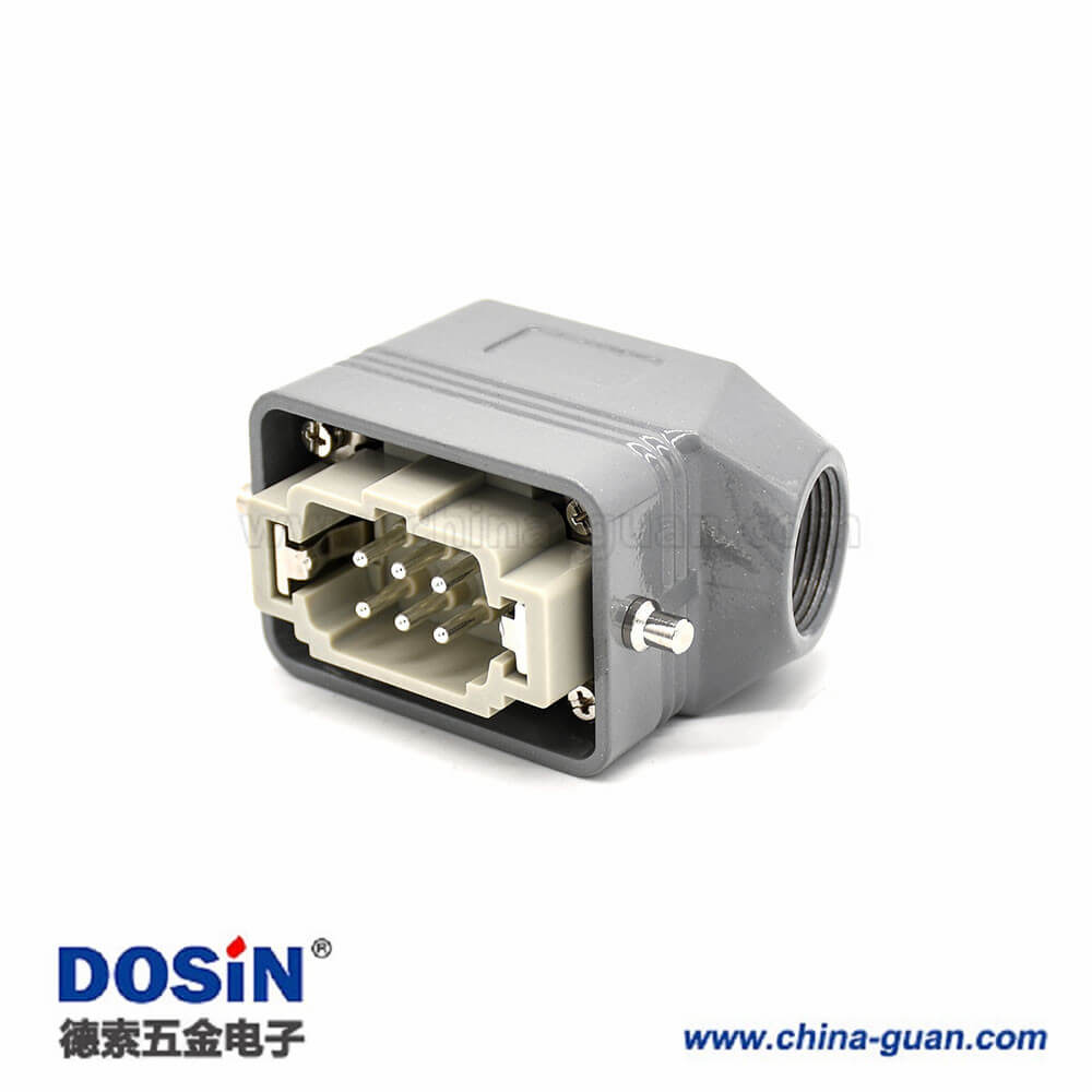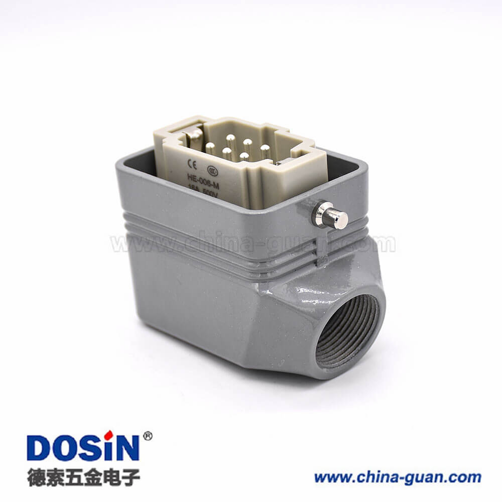 重載矩形連接器H6B表面安裝6芯鍍銀公母對(duì)接螺紋M32斜出口帶金屬防塵蓋