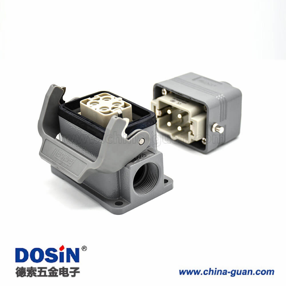 標(biāo)簽:H6B,重載連接器,表面安裝,2耳,單扣,頂出口,塑料鐵扣,4芯,鍍銀,公母對(duì)接,PG16