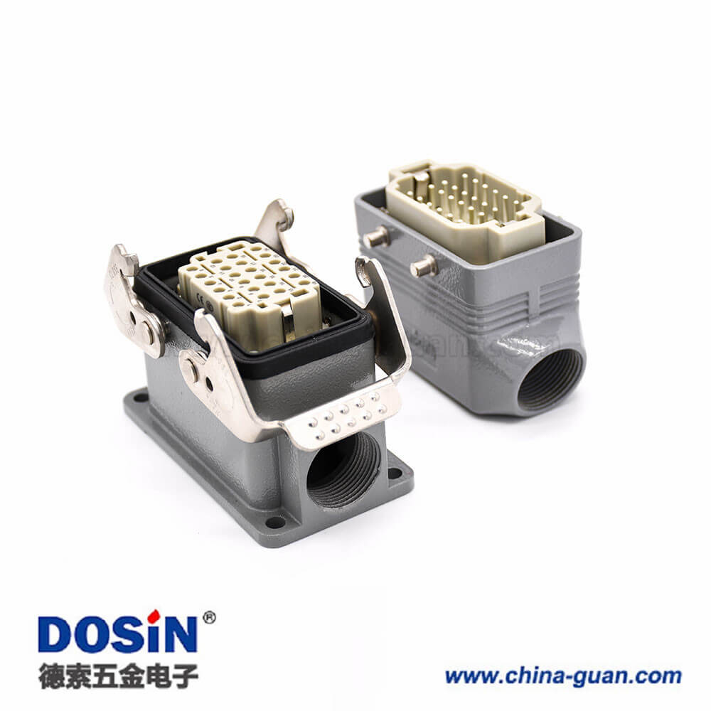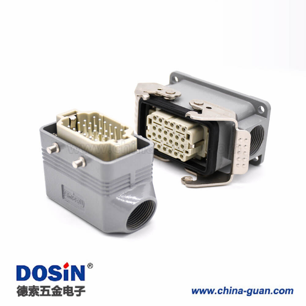 料號(hào):DOSIN-823-0020 標(biāo)簽:H10B重載連接器,表面安裝,斜出口,鐵扣,四耳,兩扣,公母對(duì)接,24芯,鍍銀,M32