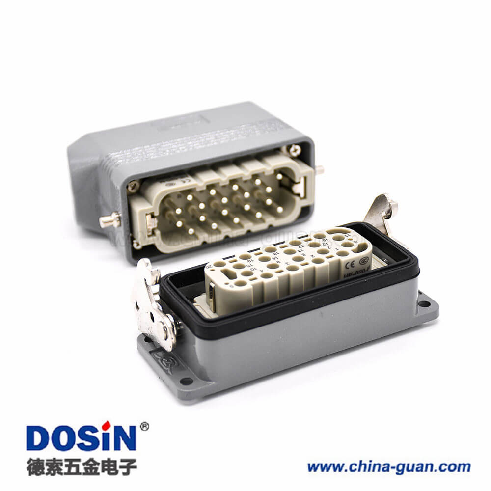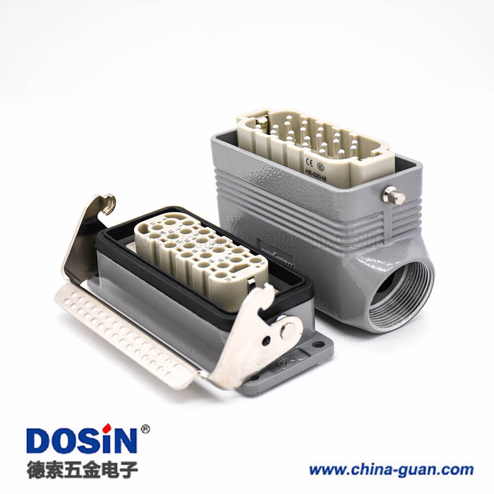 料號:DOSIN-823-0023 標(biāo)簽:H16B重載連接器,開孔安裝,斜出口,鐵扣,兩耳,單扣,公母對接,20芯,鍍銀,M32