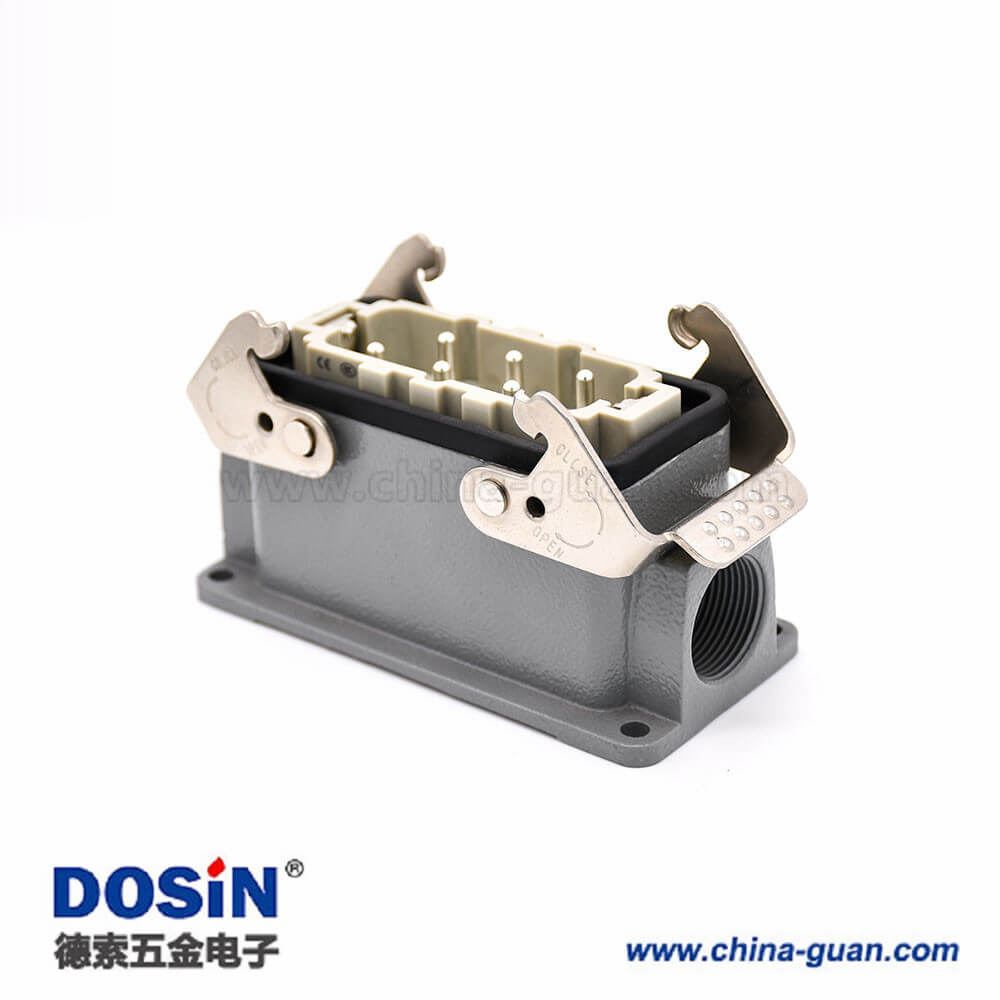 標(biāo)簽:H16B重載連接器,表面安裝,斜出口,鐵扣,四耳,雙扣,公母對接,6芯,鍍銀,M25