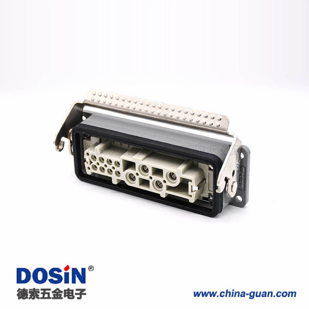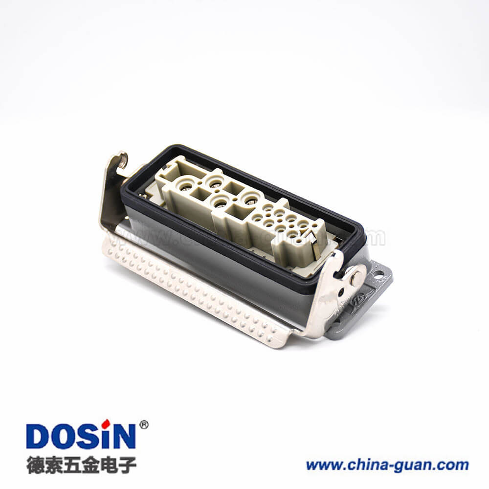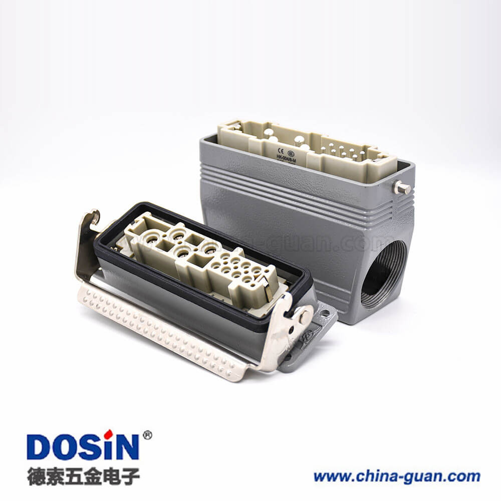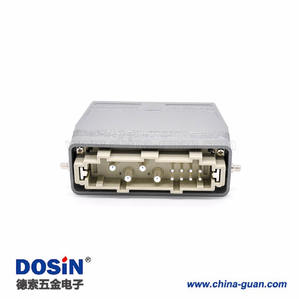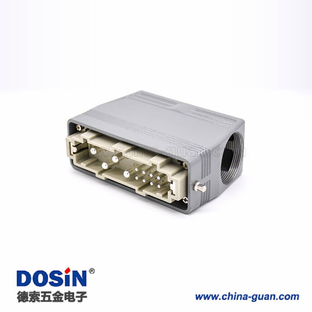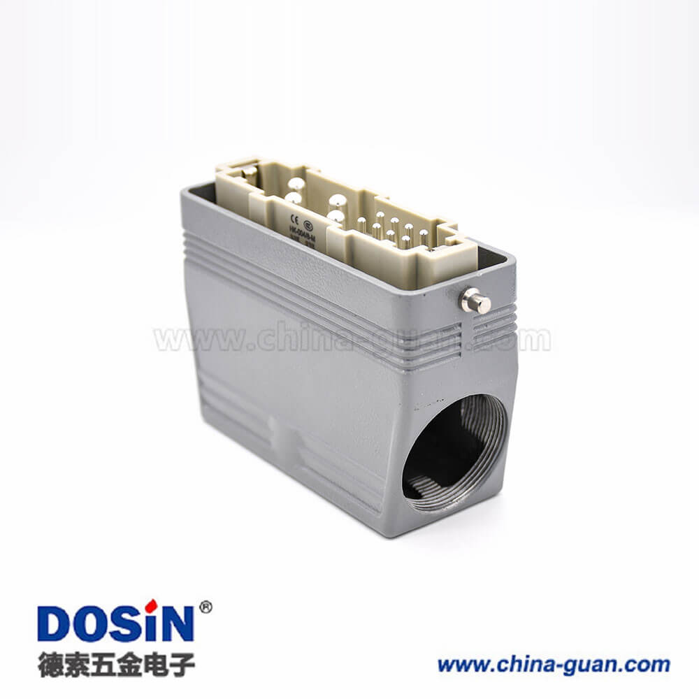 HDC連接器公母對(duì)接高結(jié)構(gòu)斜出口開孔安裝12芯H24B外殼鐵扣PG29