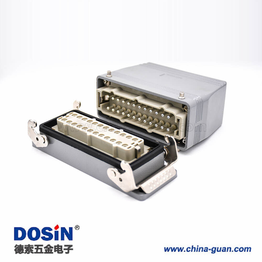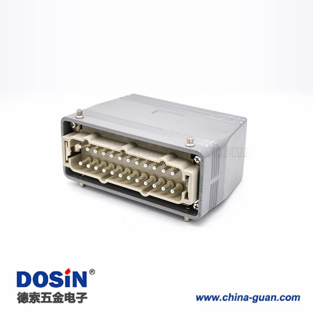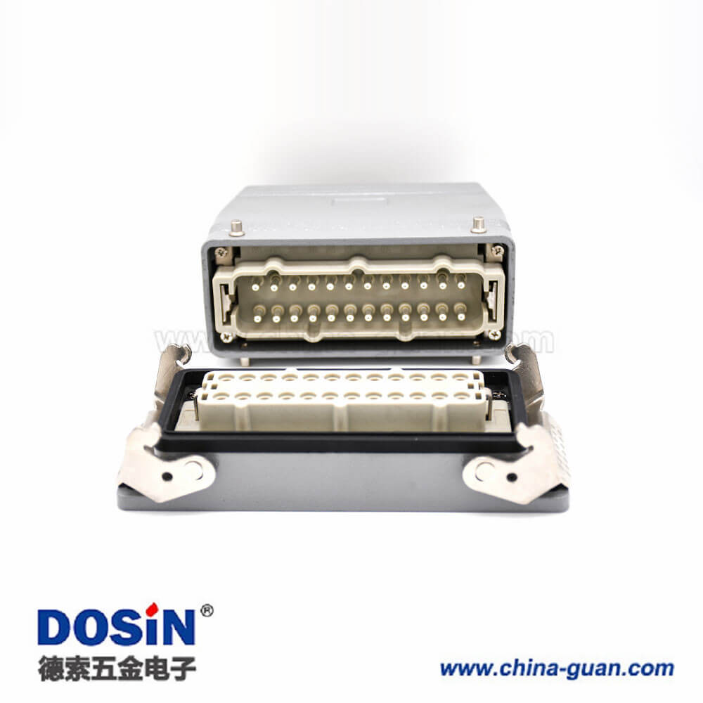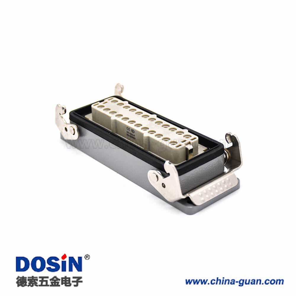 24芯重載連接器高結(jié)構(gòu)斜出口開(kāi)孔安裝公母對(duì)接H24T外殼M40鐵扣