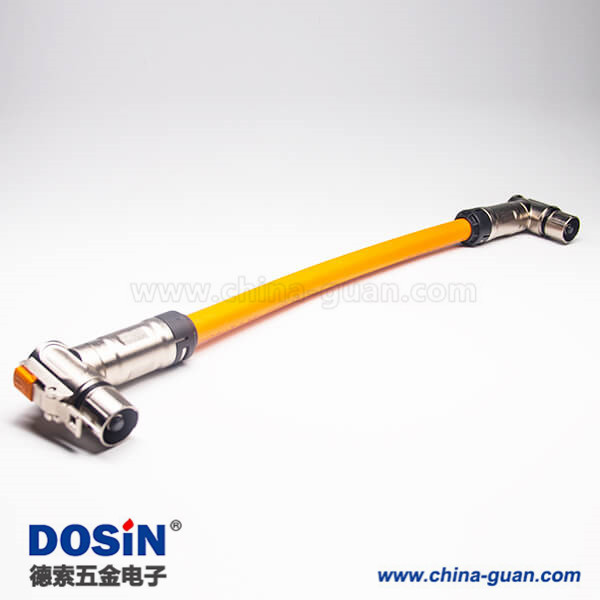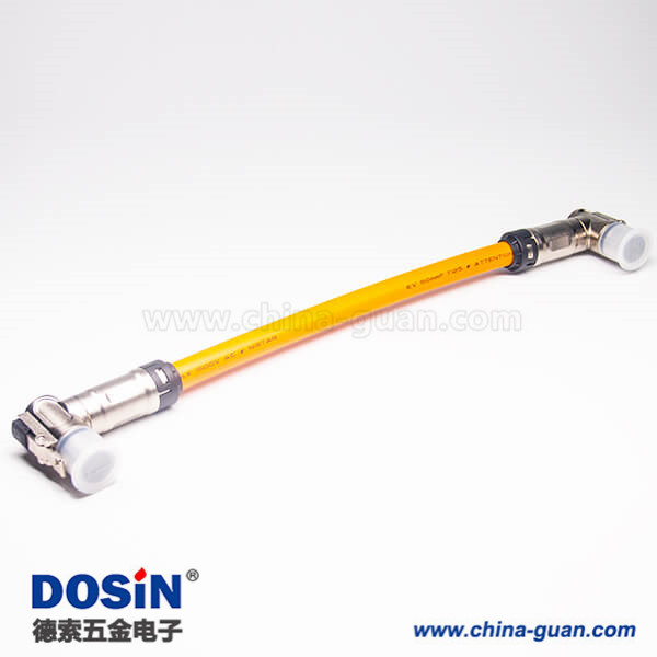 高壓插頭90°單芯金屬互鎖帶屏蔽直式轉(zhuǎn)接線25CM