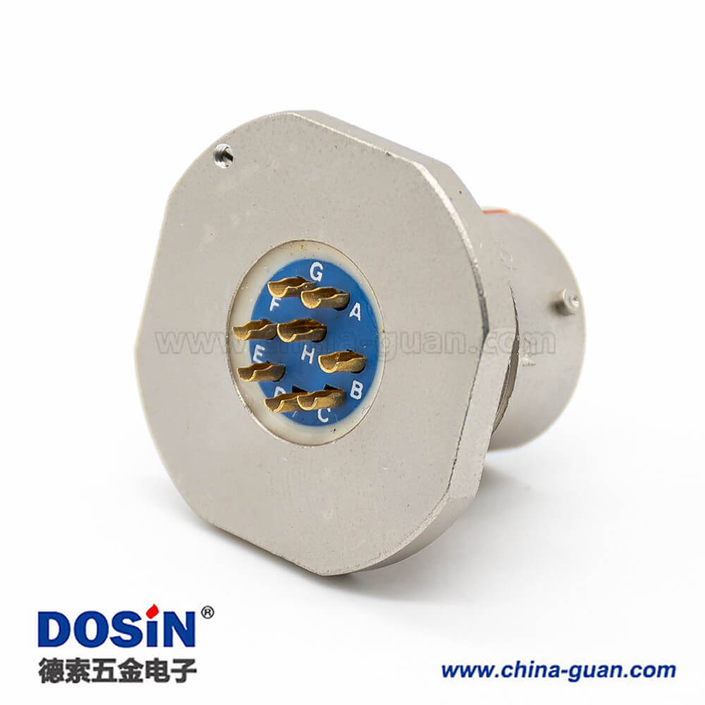 航空接頭連接器12殼體號(hào)8芯直式母插座前鎖穿墻焊杯鍍鎳卡口連接Y50EX防水連接器