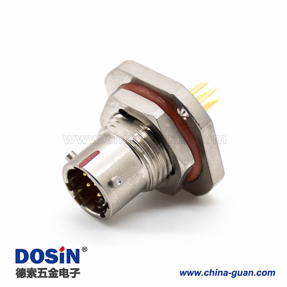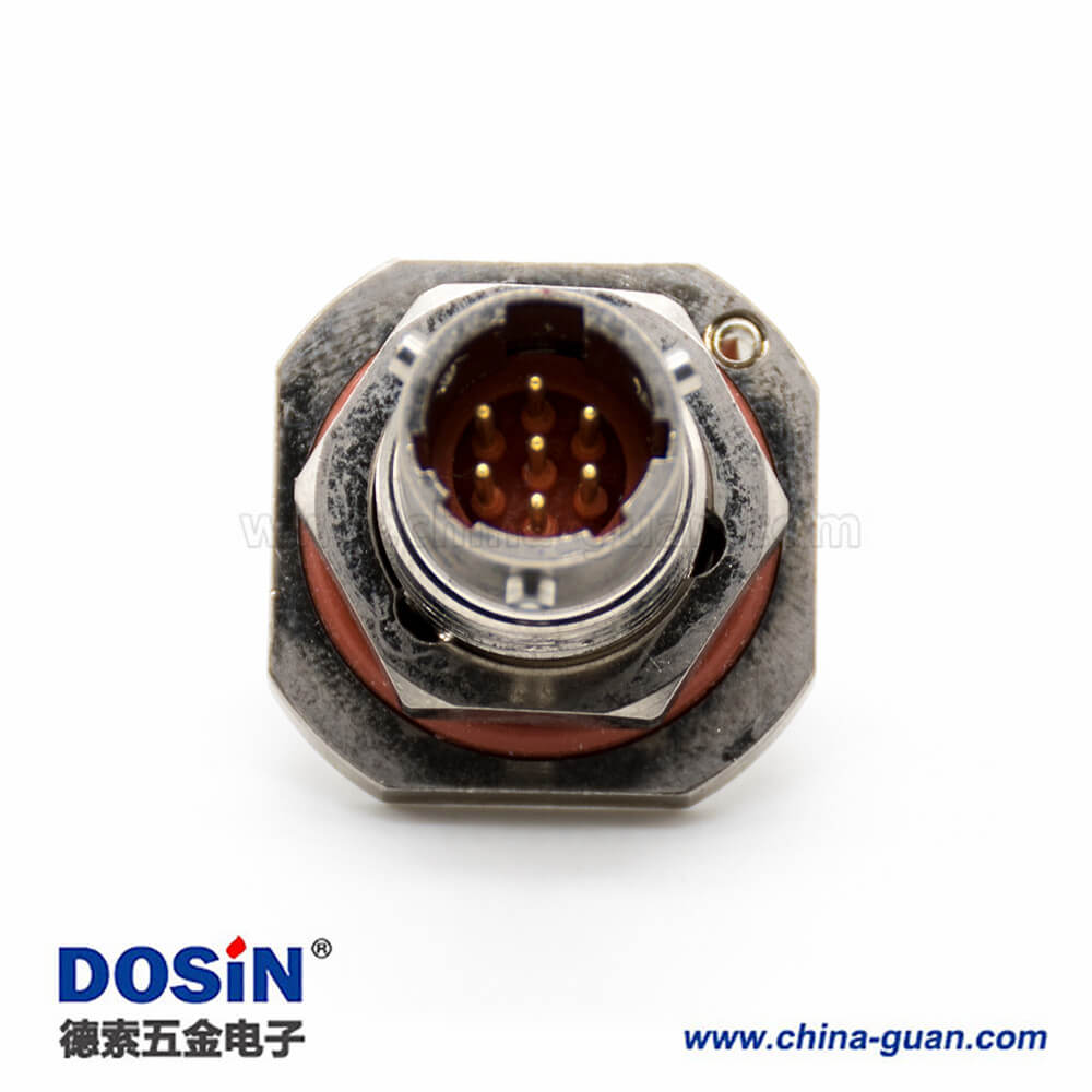 標簽:Y50X,插座,7芯,公頭,直式,卡口連接,PCB板安裝,前鎖穿墻,鋁合金,鍍鎳,防水