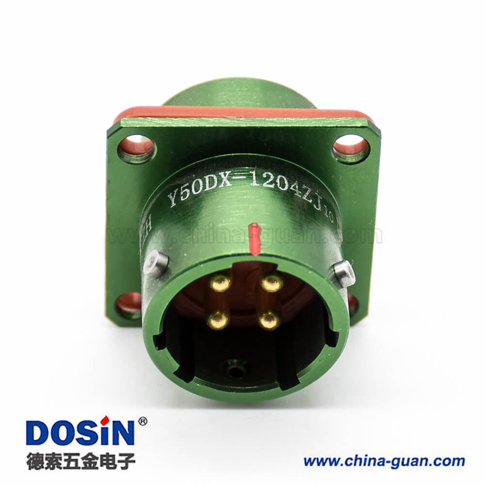 4芯連接器Y50DX直式14殼體號(hào)公插座面板安裝焊杯光亮綠色陽(yáng)極化卡口連接