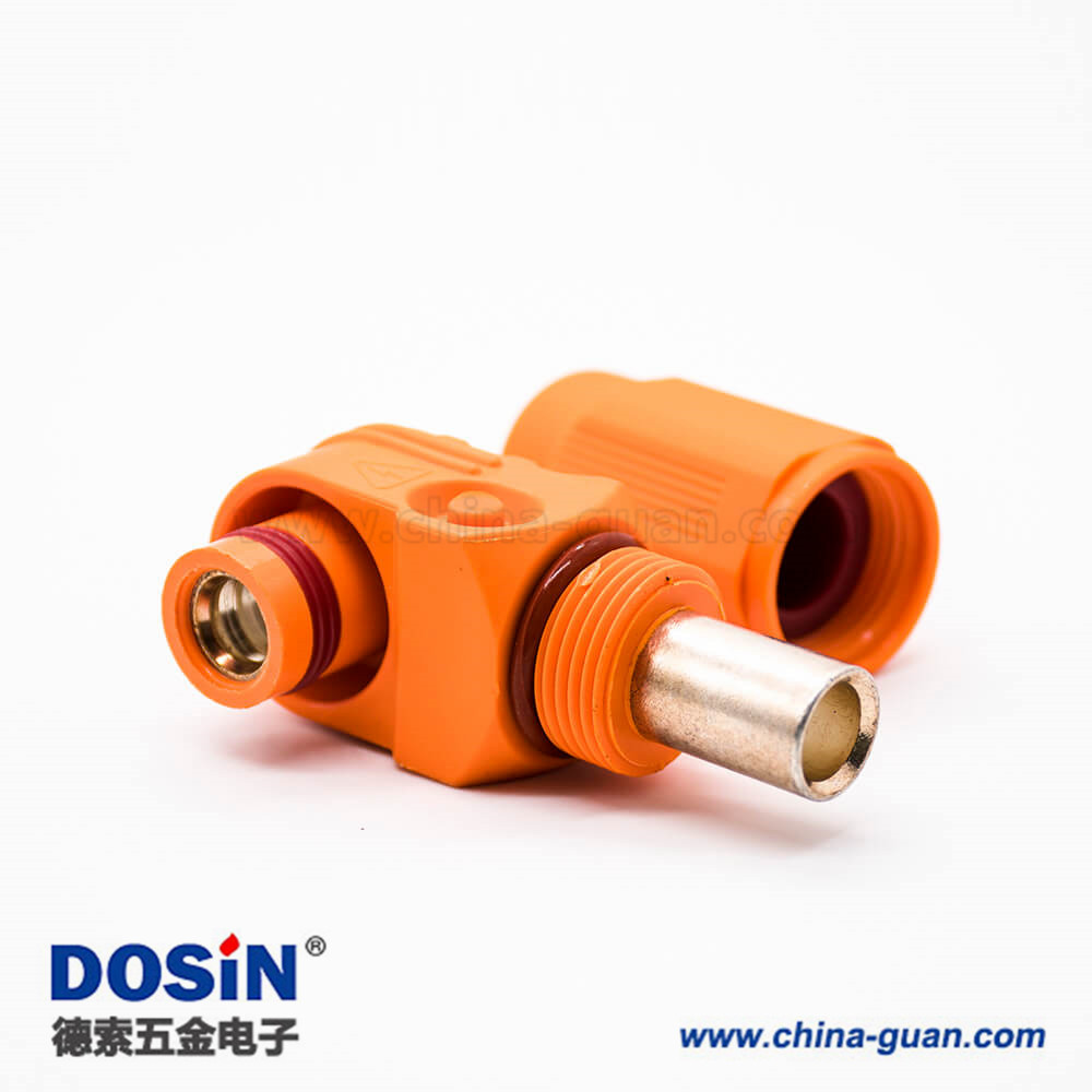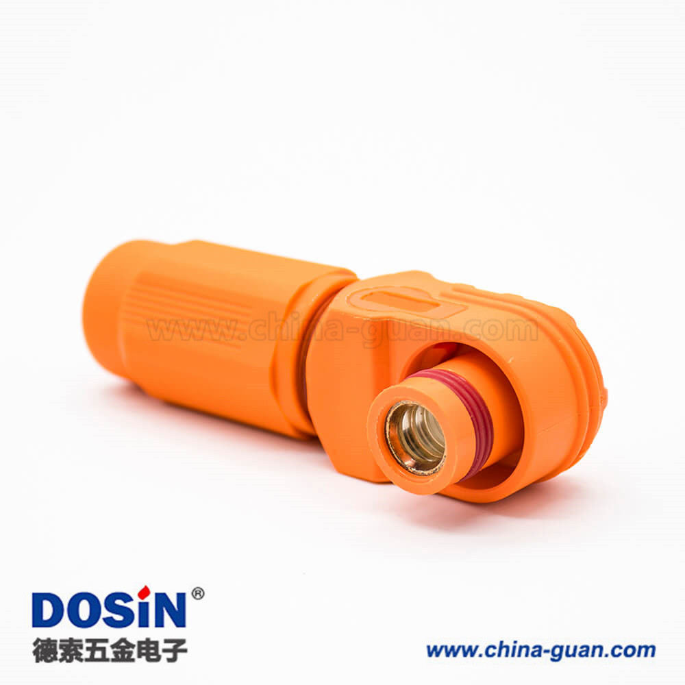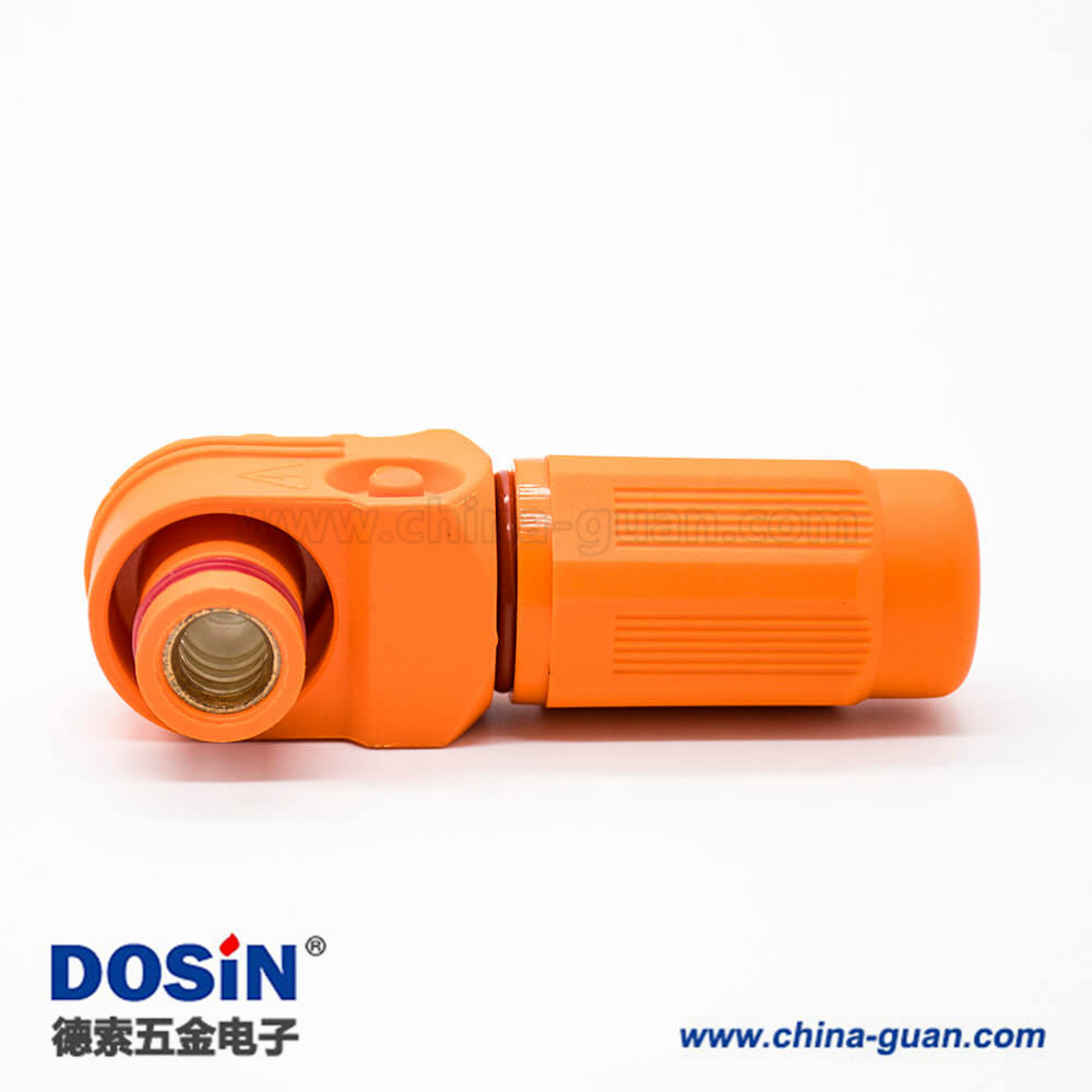 新能源電源儲(chǔ)能連接器14mm單芯塑料400A橙色I(xiàn)P67接線彎式插頭