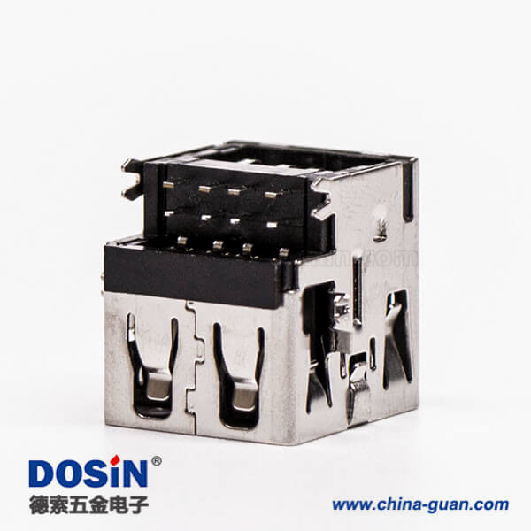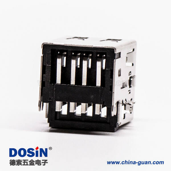 標(biāo)簽:USB2.0,母頭,Type A,彎式,雙端口,黑色膠芯,插孔,接PCB板