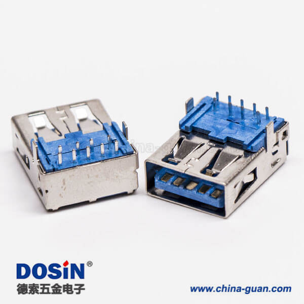 標簽:USB3.0,Type A,母頭,彎式,插板,DIP,藍色膠芯,PCB板,直腳