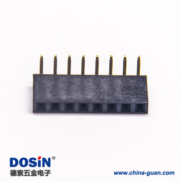 料號:DOSIN-863-0572 標簽:排母連接器,母頭,彎式,90度,8Pin,2.54mm,單排,插板,Y型,焊接,鍍金,黑色,H8.5mm,方形