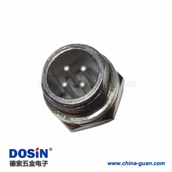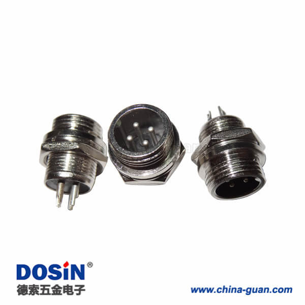 精加工鍍金航空插頭GX12-4芯公頭插座板端安裝連接器10個