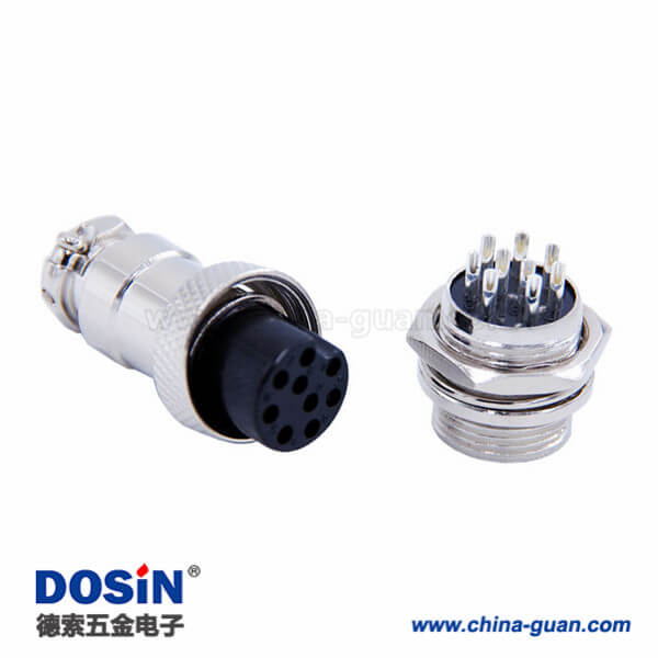 標簽:GX16,常規(guī)款,插頭/插座,前鎖板,9芯,公/母,直的,面板/接線