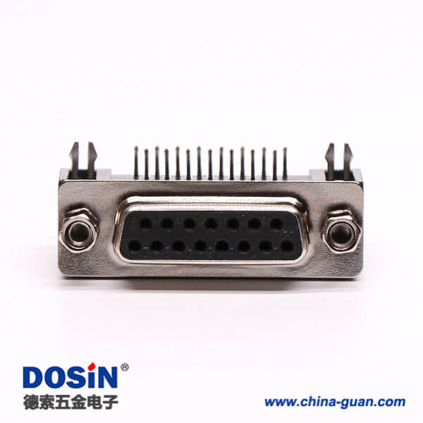 迷你 D Sub 15針彎式接PCB板鉚鎖焊板母座