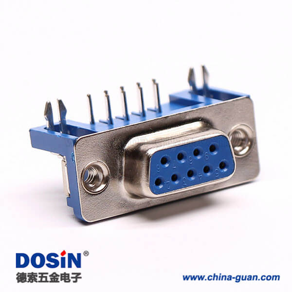 料號:DOSIN-868-0111 標簽:D-sub,標準型,9 Pin,彎式,母頭,藍膠,穿孔,接PCB板