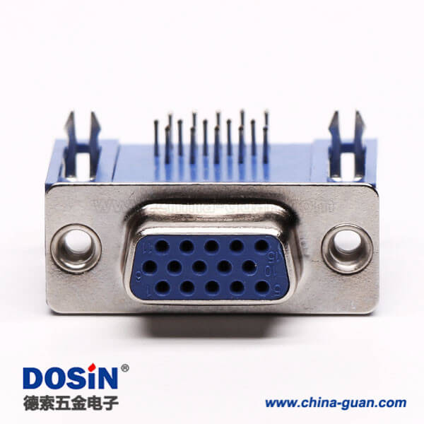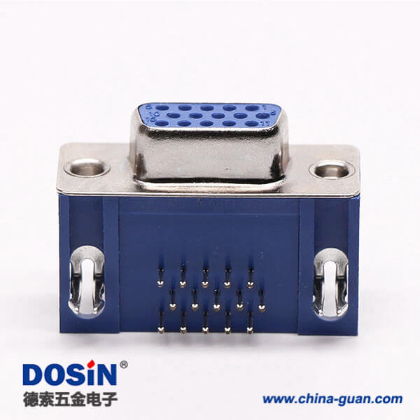 料號:DOSIN-868-0173 標簽:D-sub連接器,高密度,彎頭,公頭,15針,三排,鉚鎖不帶螺絲,穿孔,插pcb板,藍色膠芯