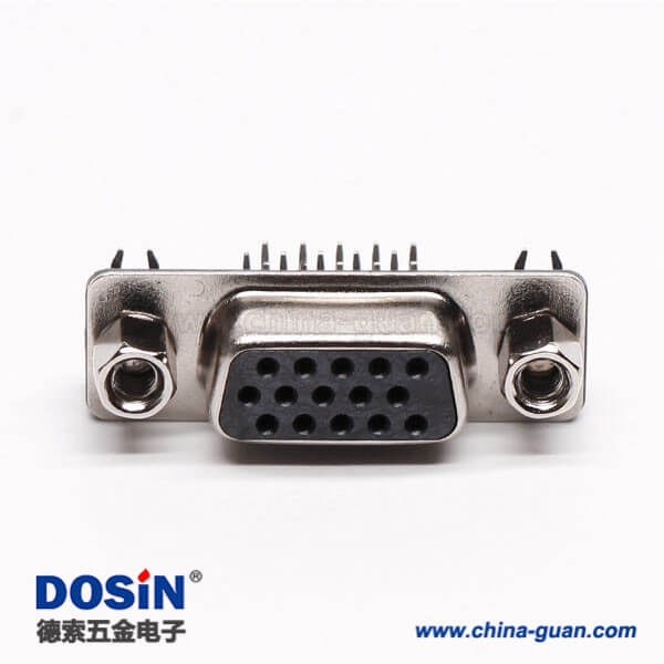 料號:DOSIN-868-0175 標(biāo)簽:D-sub連接器,高密度,直角彎頭,母頭,15針,鉚鎖,穿孔,插pcb板,黑色膠芯