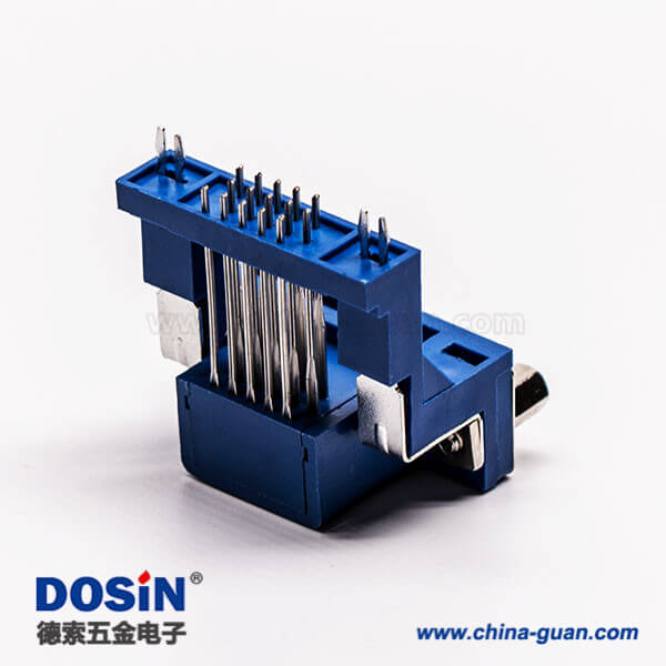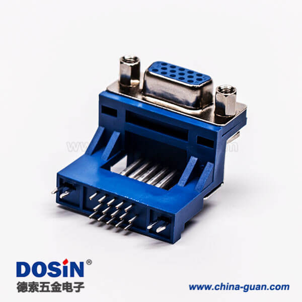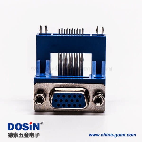 d sub連接器15針母頭彎式高架帶點(diǎn)雙加強(qiáng)筋鉚鎖藍(lán)色膠芯