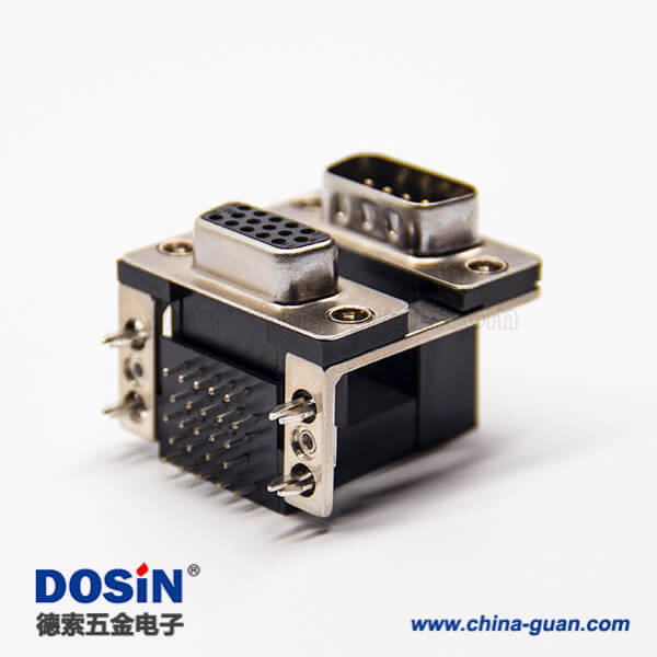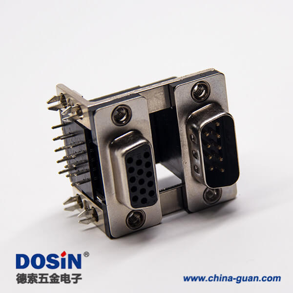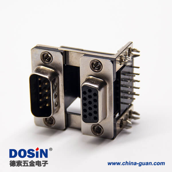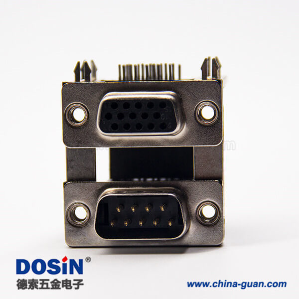 料號:DOSIN-868-0194 標(biāo)簽:D-sub連接器,高密度,彎式,雙胞胎,15針 母頭,9針 公頭,魚叉腳,插板,PCB板