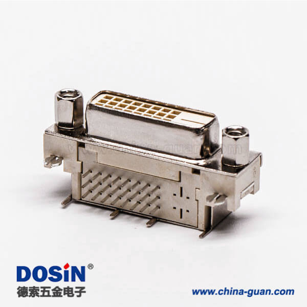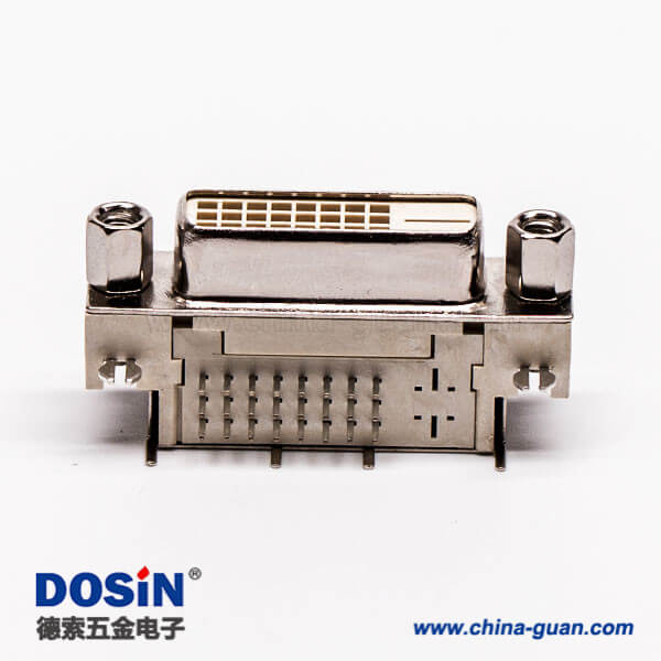 料號:DOSIN-868-0268 標(biāo)簽:DVI-D 連接器,母頭,彎式,24+1,白色膠芯,帶螺母,帶魚叉,穿孔,接PCB板