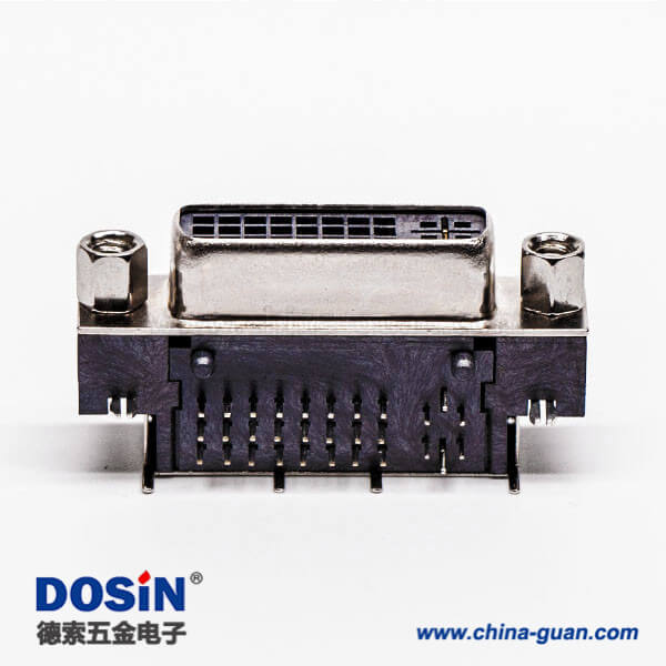 標(biāo)簽:DVI-D 連接器,母頭,彎式,24+1,黑色膠芯,帶魚叉,穿孔,接PCB板,帶螺母