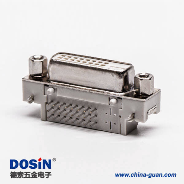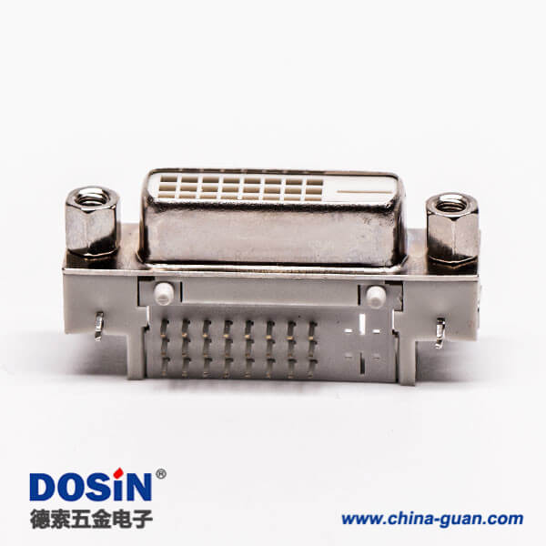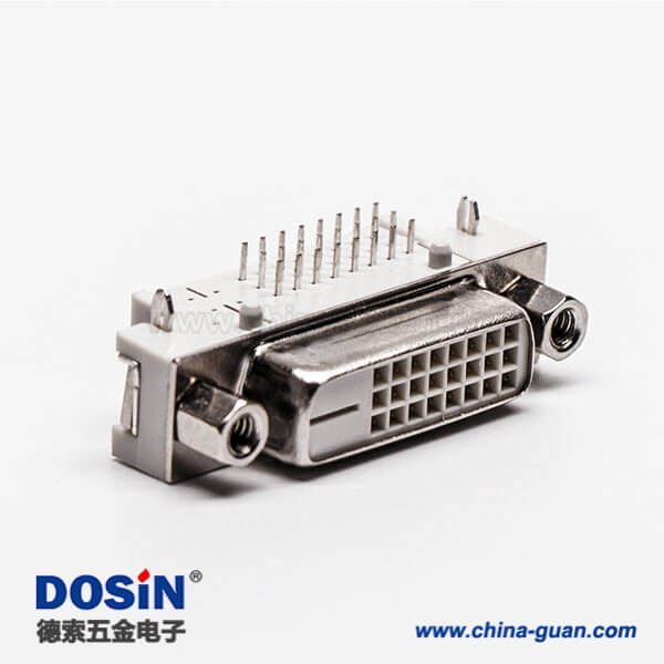 料號:DOSIN-868-0275 標簽:DVI-D 連接器,母頭,彎式,24+1,白色膠芯,帶魚叉,插板,接PCB板,帶螺母