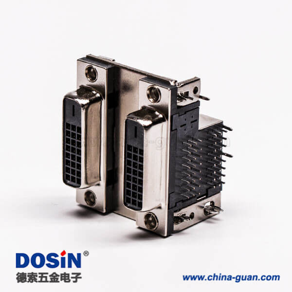 DVI24+1連接器雙胞胎母頭彎式魚叉插PCB板連接器