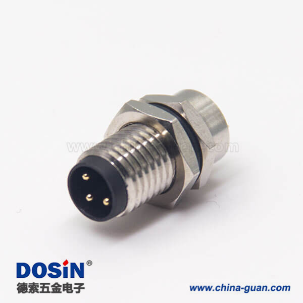 料號:DOSIN-868-0509 標(biāo)簽:M8,3芯,板端插座,公頭,直頭,面板安裝,前鎖板,焊線