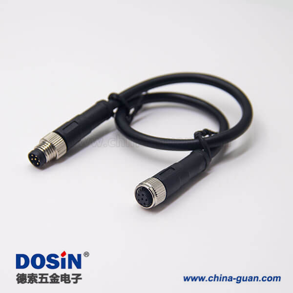 料號:DOSIN-868-0531 標簽:M8,6芯,A編碼,線束,公轉母, 雙邊線,直式,焊線,不帶屏蔽